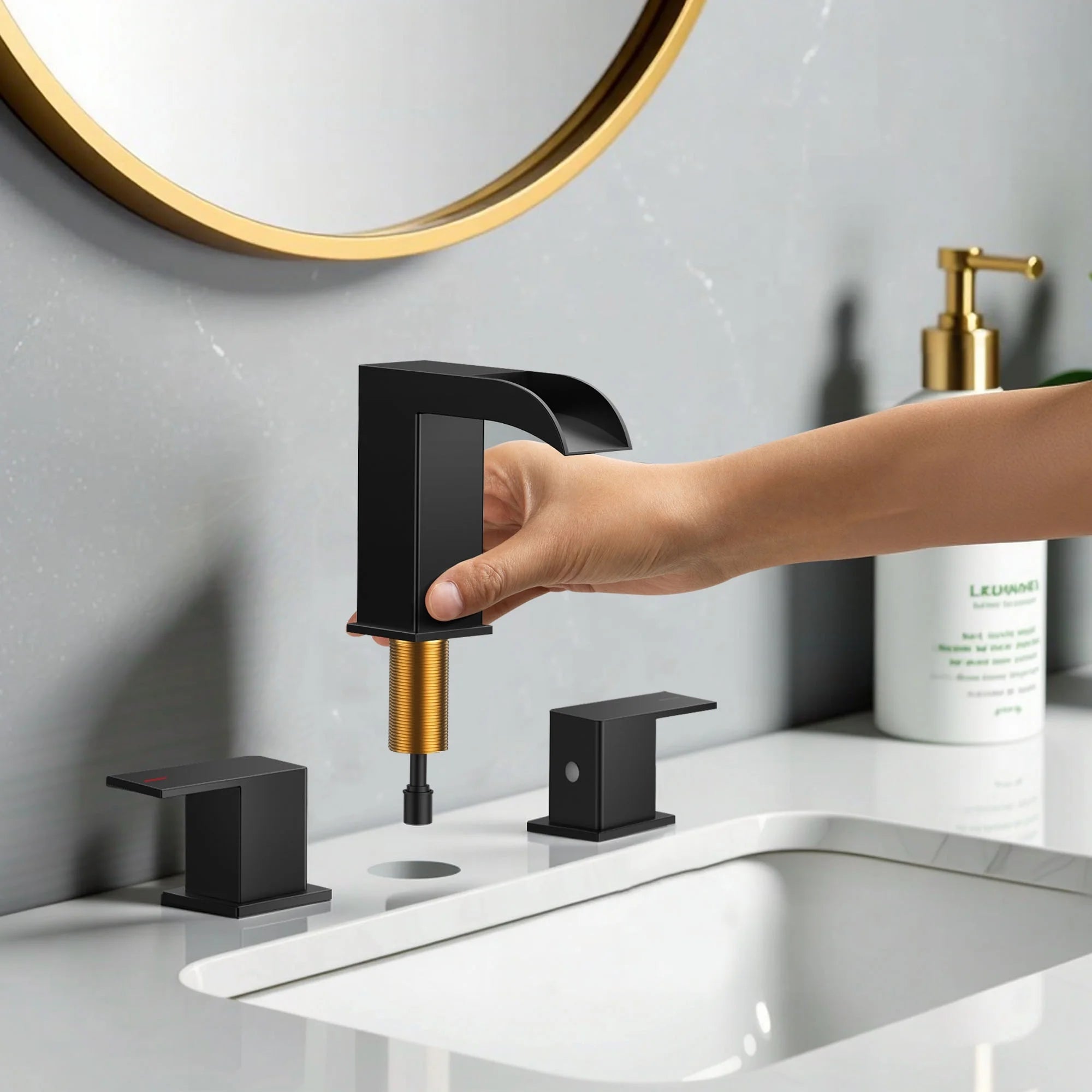 Professional Leak-Proof Performance: Our 8inch Bathroom sink faucet 3 hole are built-in upgraded ceramic disc cartridges, a high seal performance cartridge valve has passed 500,000 cycle testing to ensure that no leaking or bursting, and is stable and reliable for everyday use.