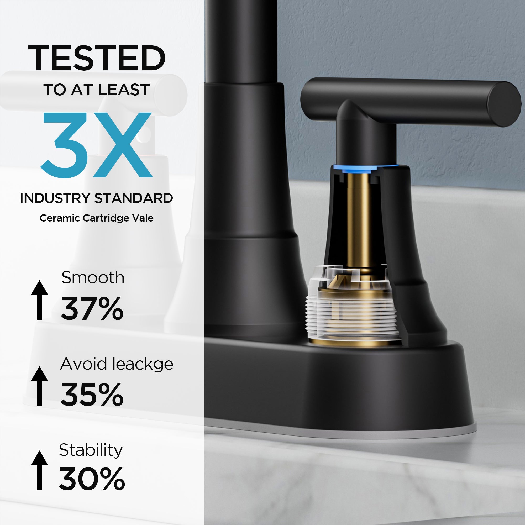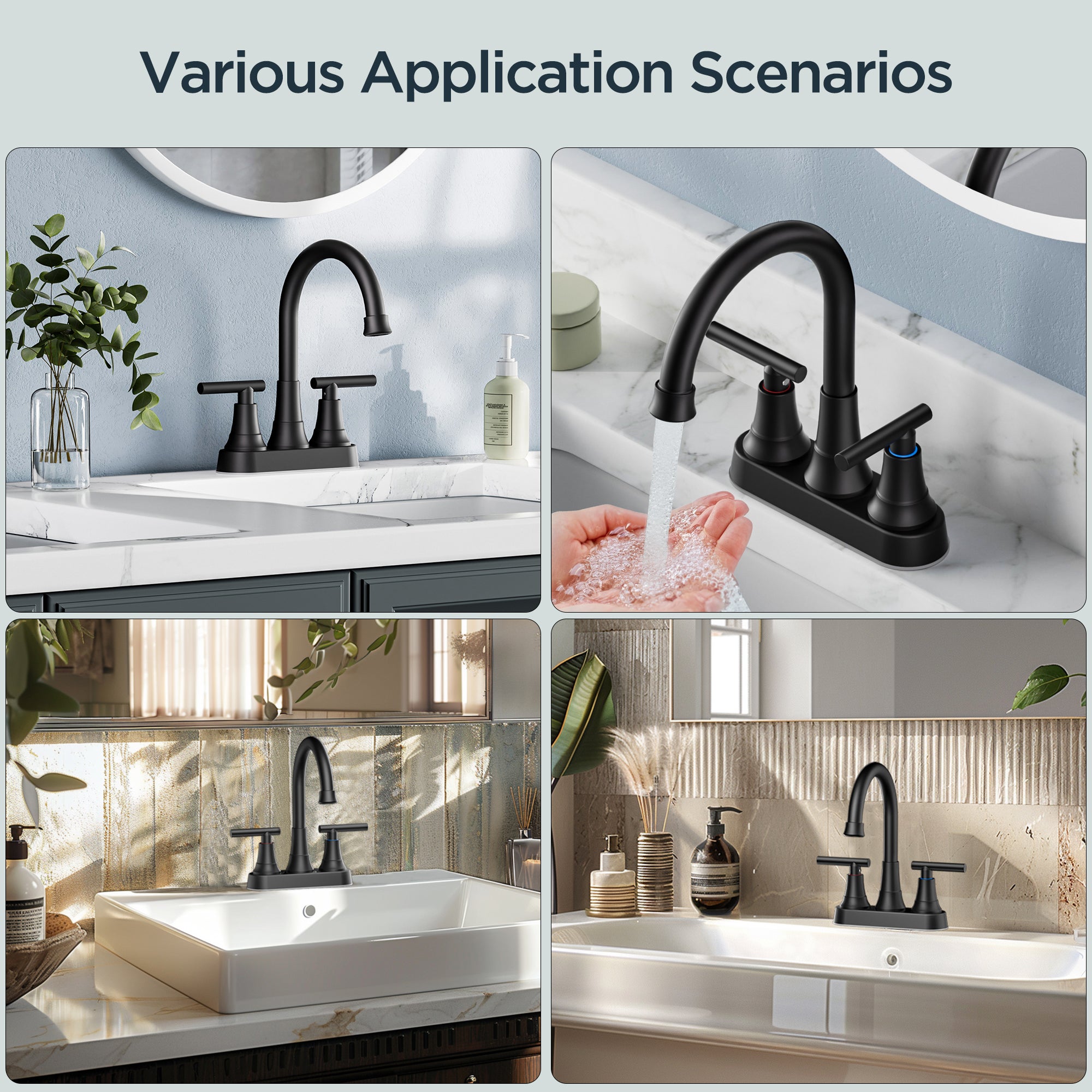 360° Rotating Spout: The 2-handle centerset bathroom sink faucet has a 360° rotation design for increased cleaning area. Provide more space to clean your basin in every corner.