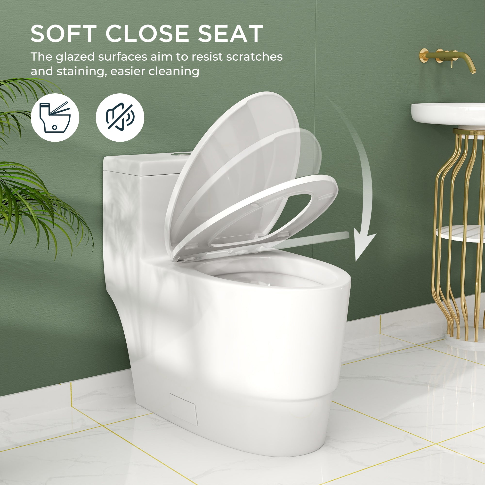 Fully Skirted Design: This one-piece toilet features a fully skirted design, giving your bathroom a sleeker, more modern appearance.