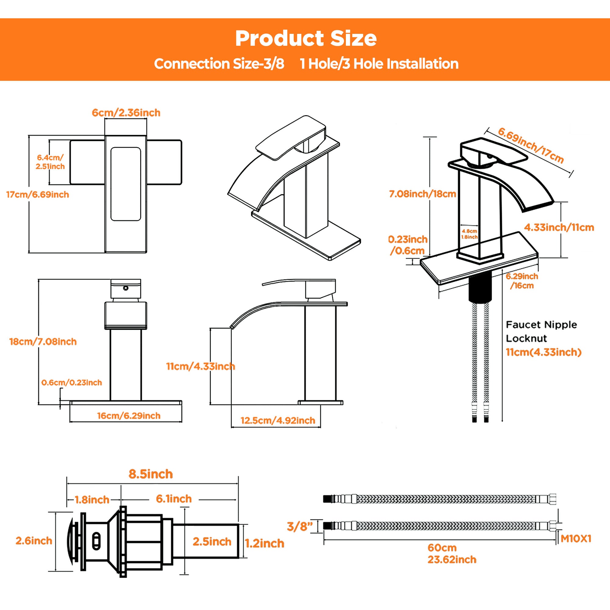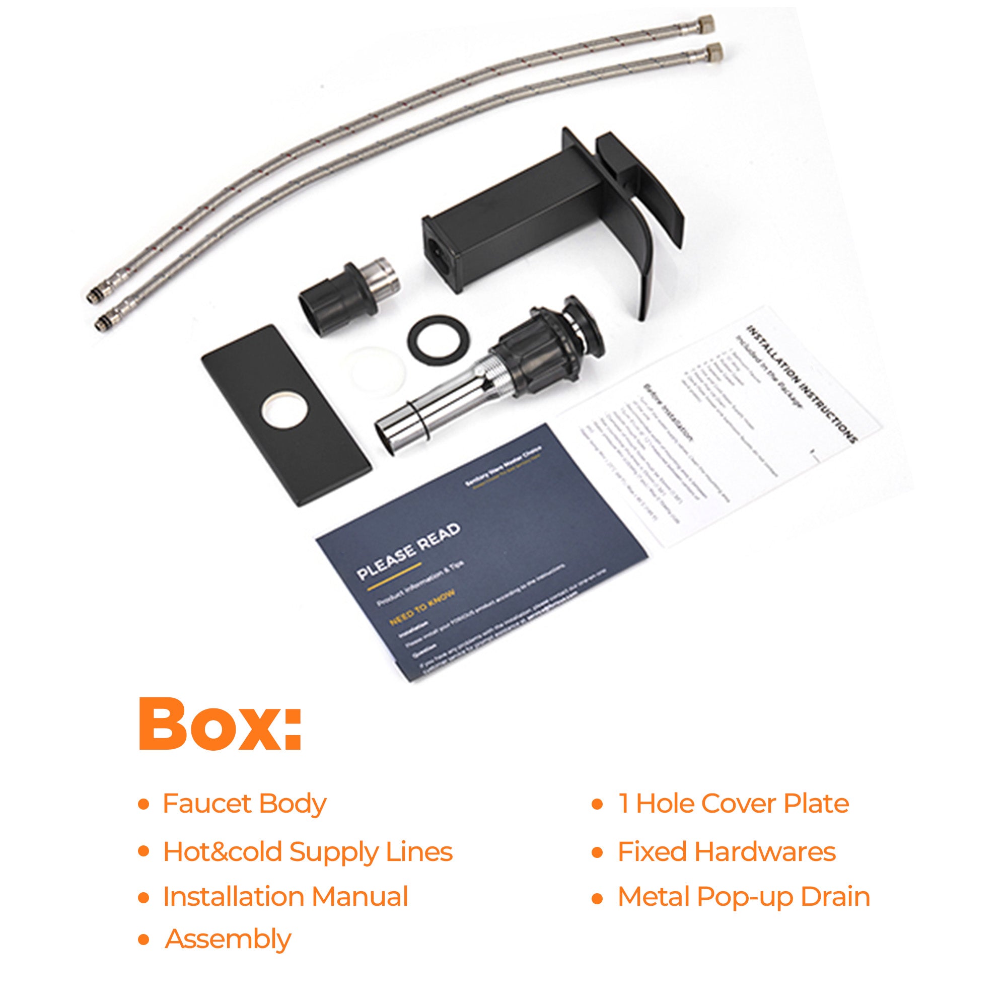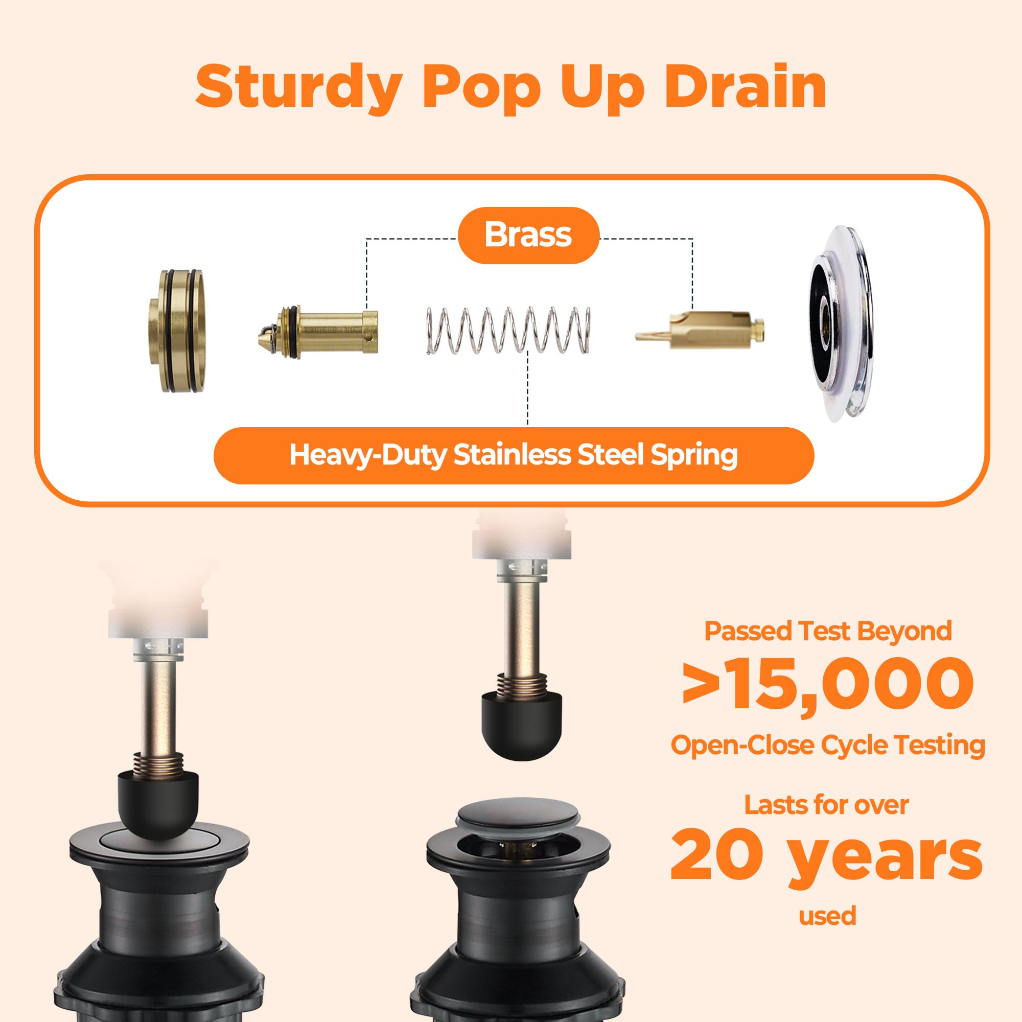 All-Inclusive: bathroom sink faucet comes with 3/8" 24” hoses, pop-up drain, US-standard fittings.