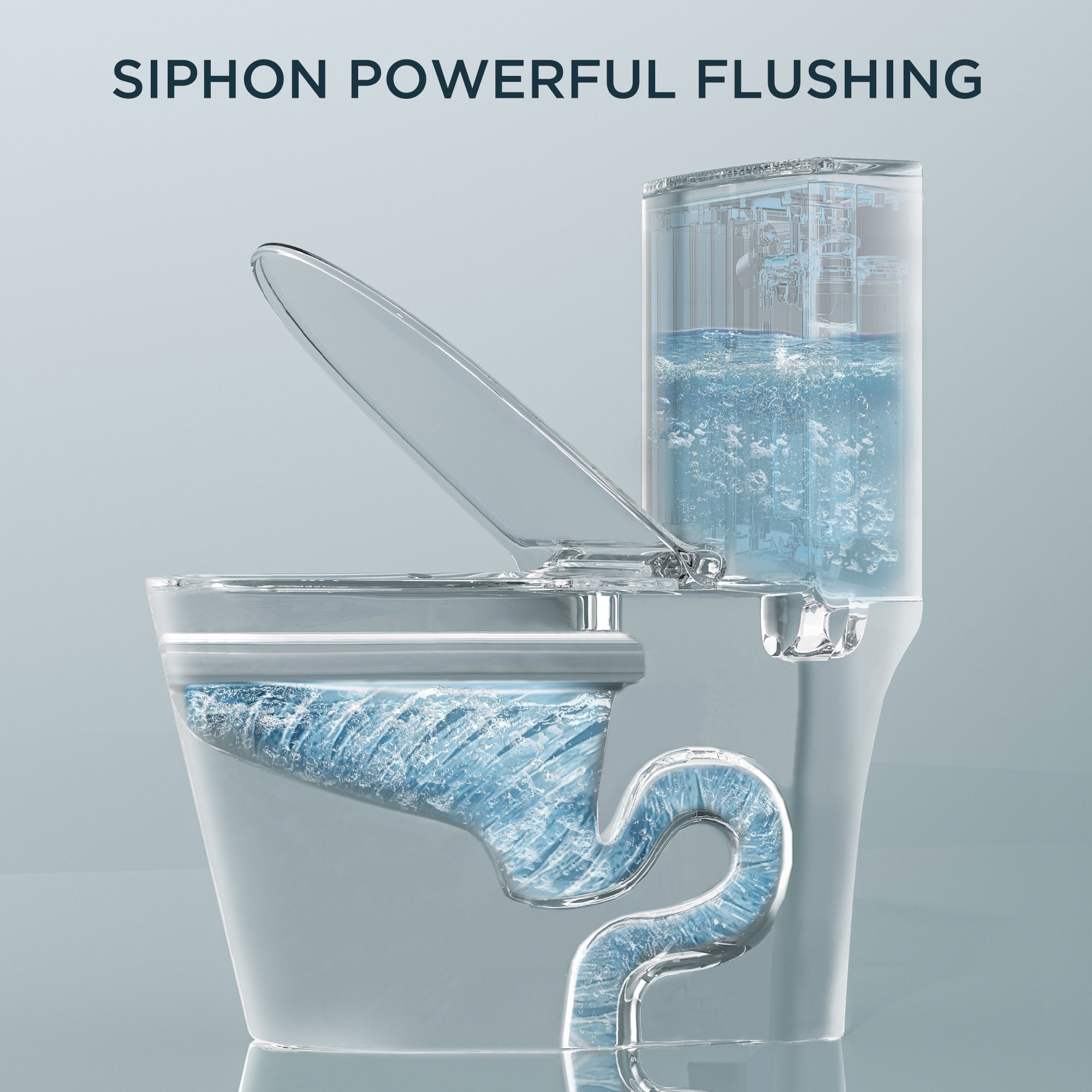 Water Saving Performance: The highly efficient dual-flush toilet allows you to proactively conserve water by selecting 1.1 GPF or higher ( 1.6 GPF ) for multiple jobs. Siphon flushing toilet with the fully glazed flush system, bringing super quiet and powerful flushing - No clogs, No leaks.