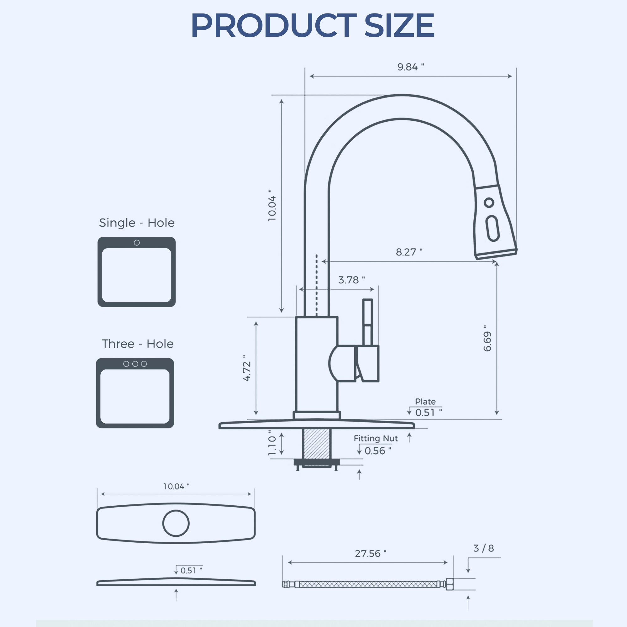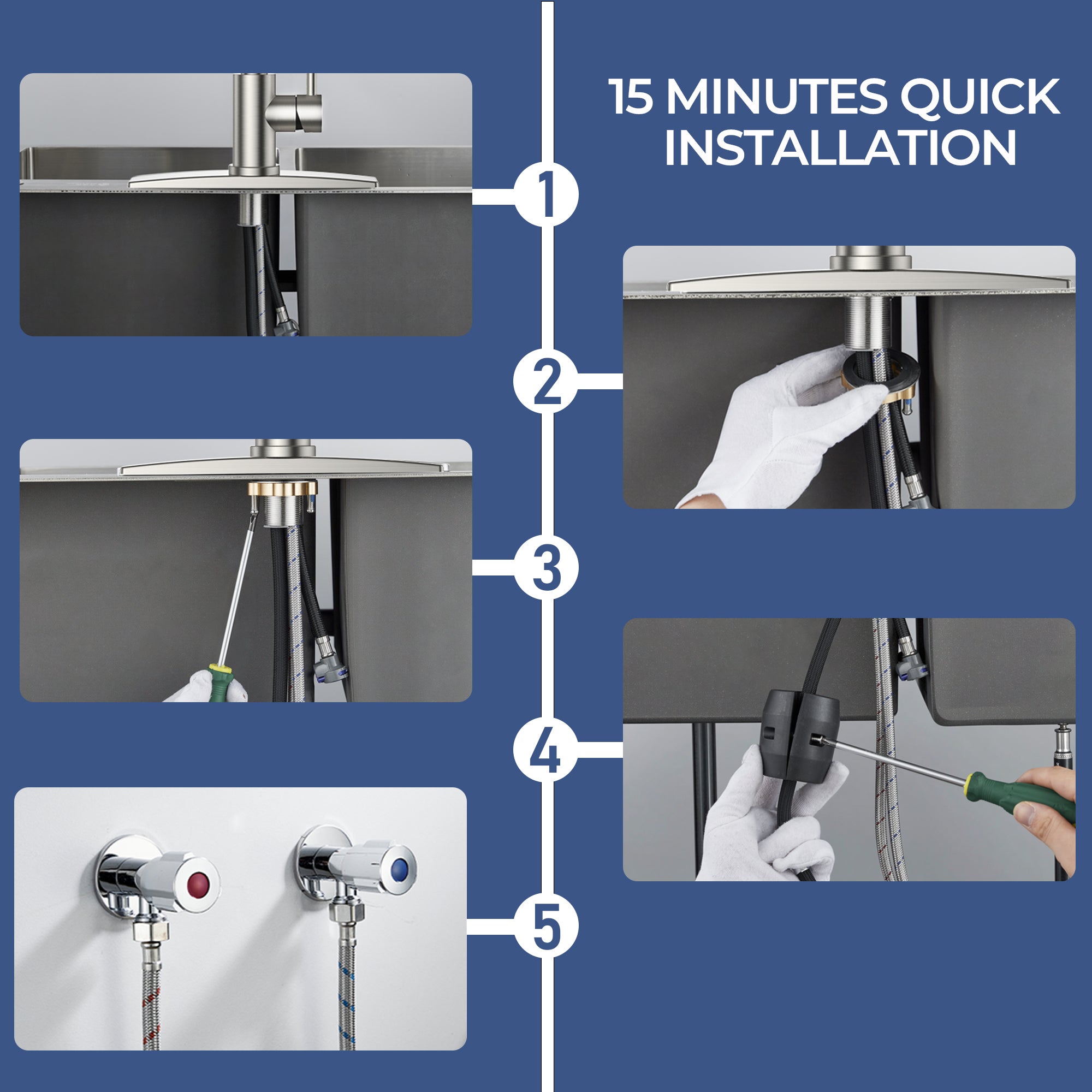 Easy DIY Installation: It comes with a 10-inch detachable deck plate, compatible with both 1 hole and 3 hole sinks. All hardware and step-by-step instructions are included in the package-no plumber required.