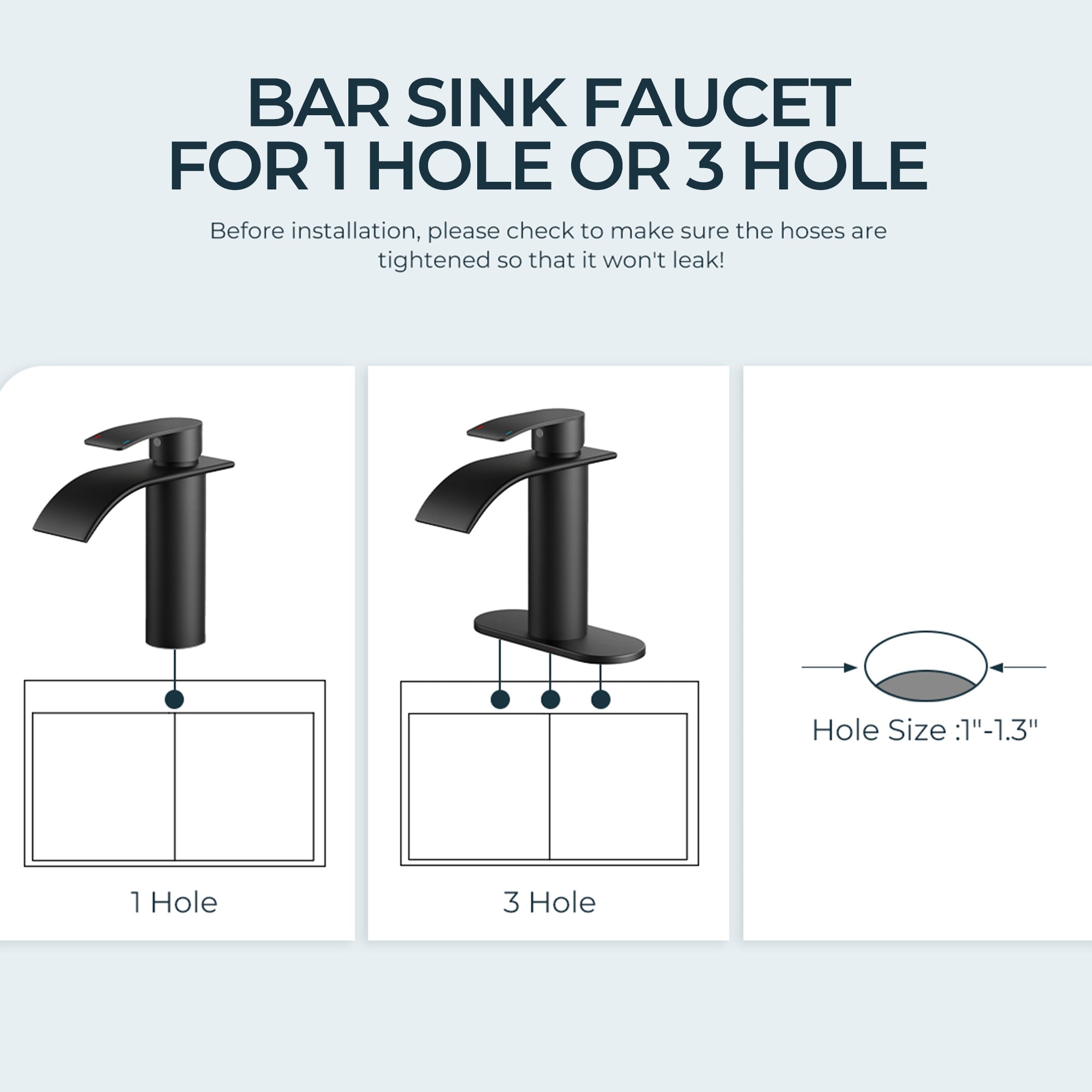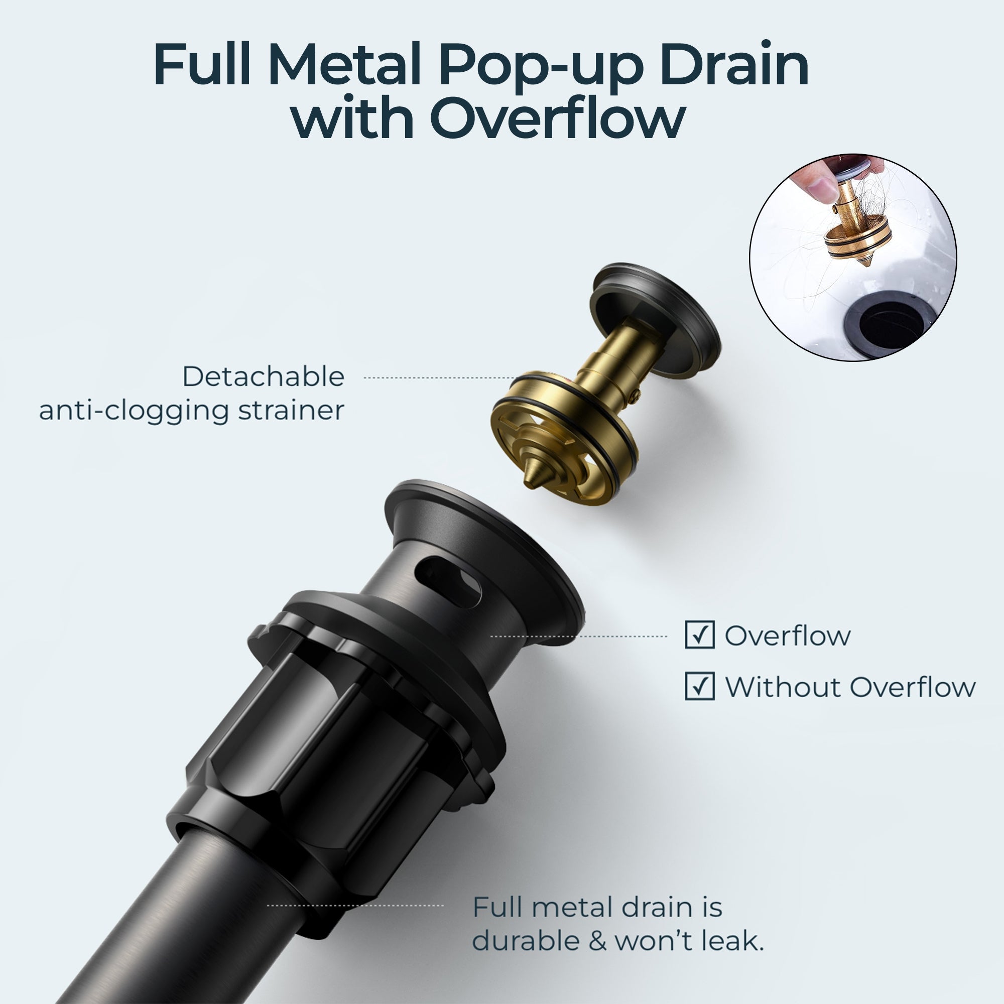 Everything Included: This bathroom faucet for sink 1 or 3 hole comes with 3/8 threaded 24-inch hoses, a metal pop-up drain, and US-standard fittings. Pre-tested parts ensure instant installation-no extra purchases or delays.