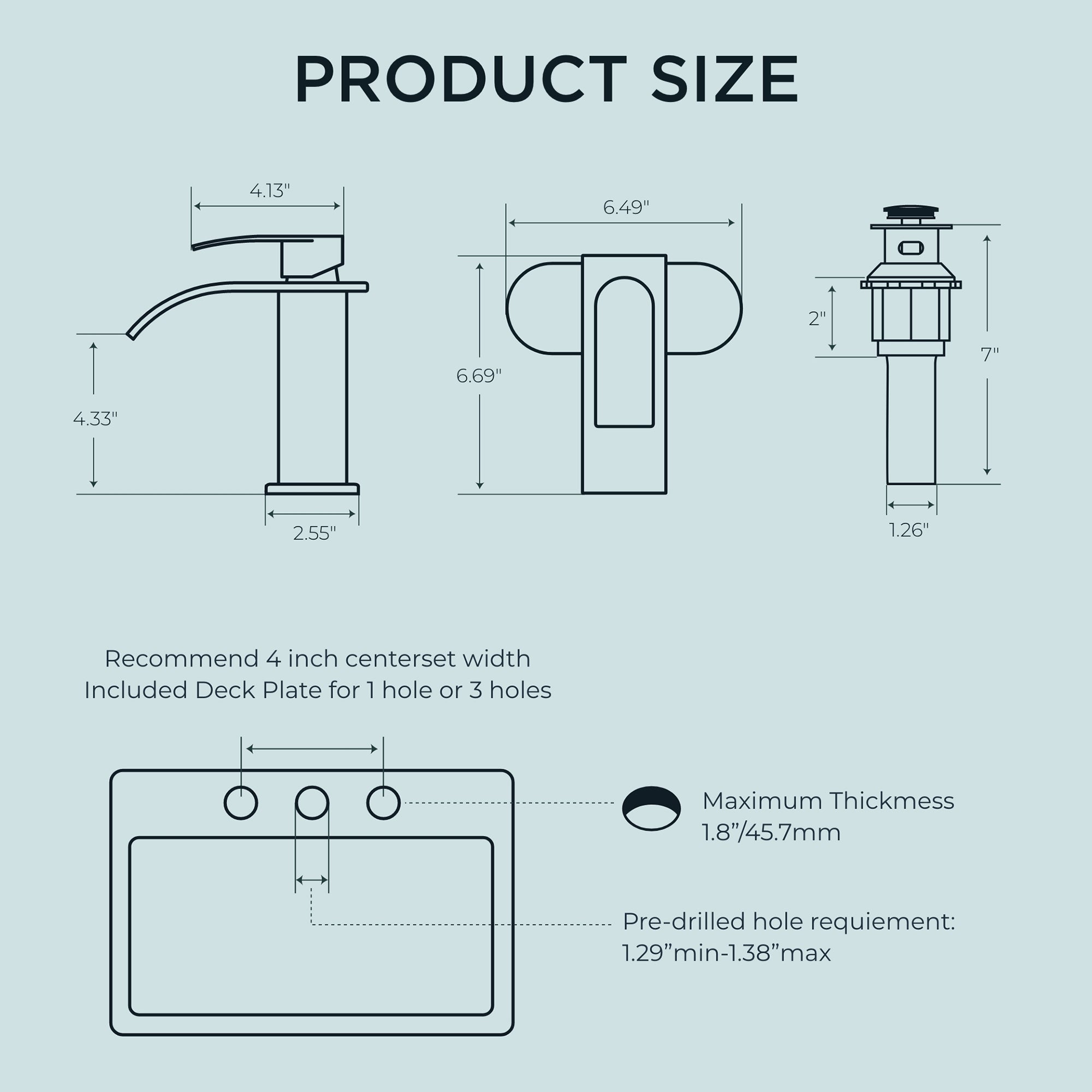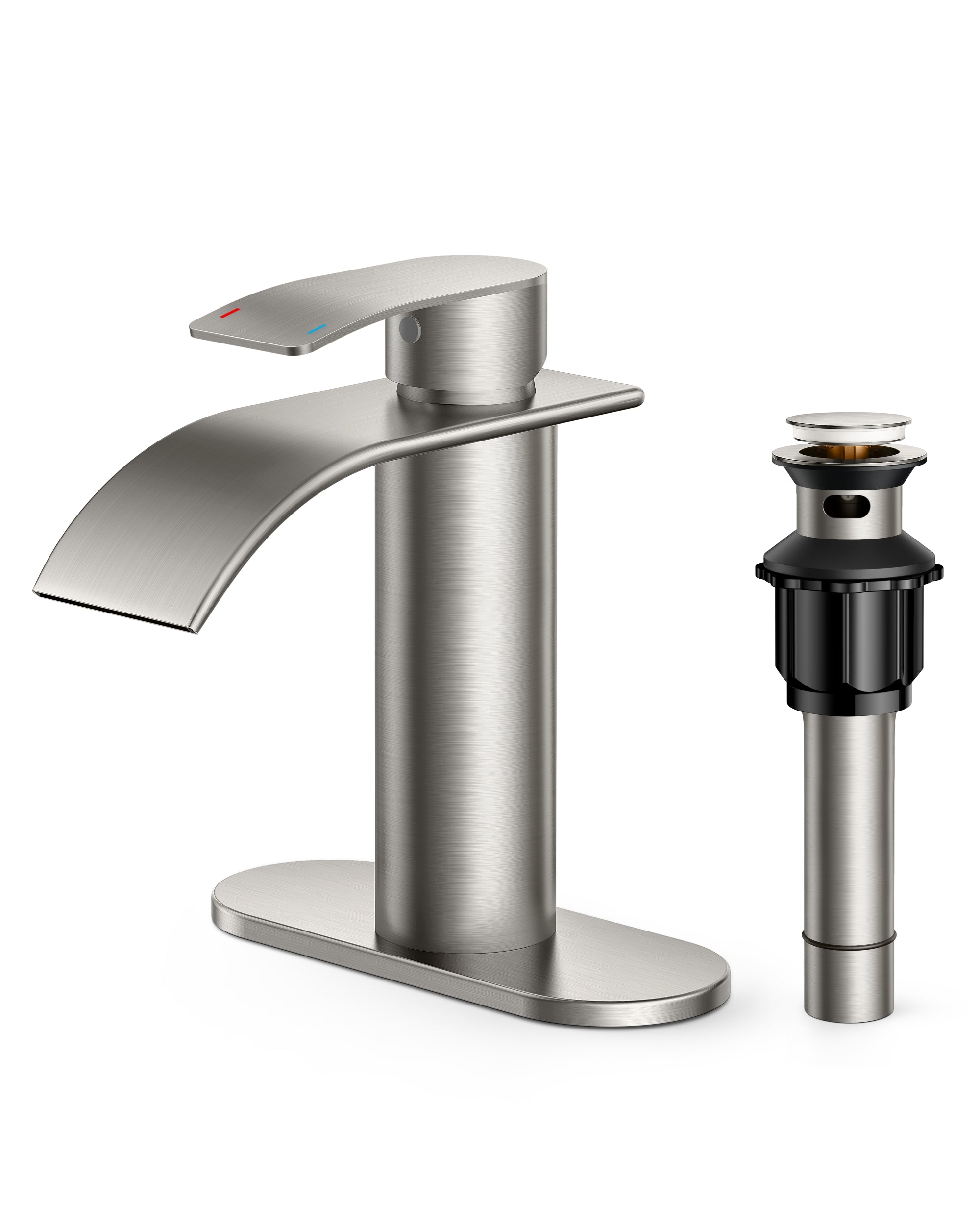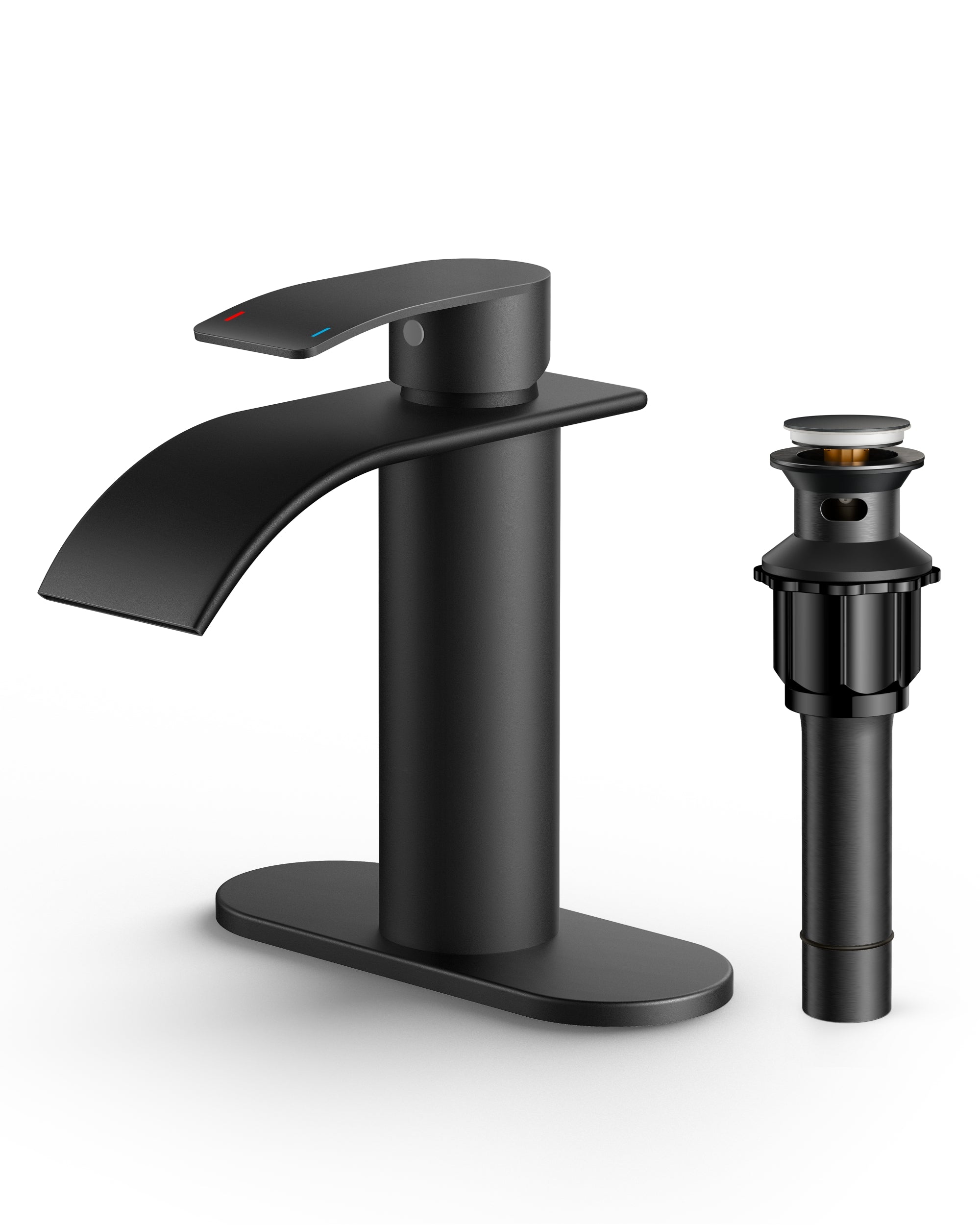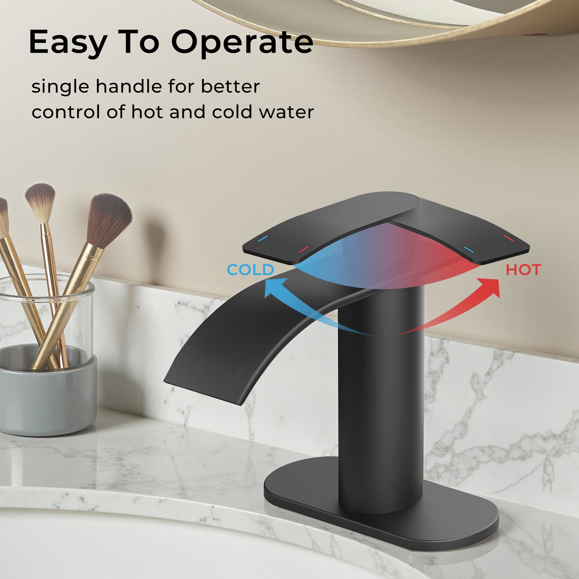 Anti-Splash Waterfall Design: Our bathroom sink faucet features a waterfall spout to reduce splashing. Ideal for compact spaces, maintains strong flow even with low pressure. Modern style meets practical performance.