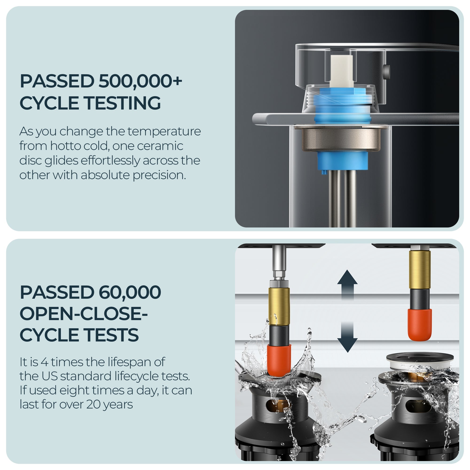 Special Feature: Full Metal Pop Up Drain(with anti-clogging filter), Lead Free 304 Stainless Steel, cUPC Hoses, cUPC Certification, WaterSense Certification, NSF Certification