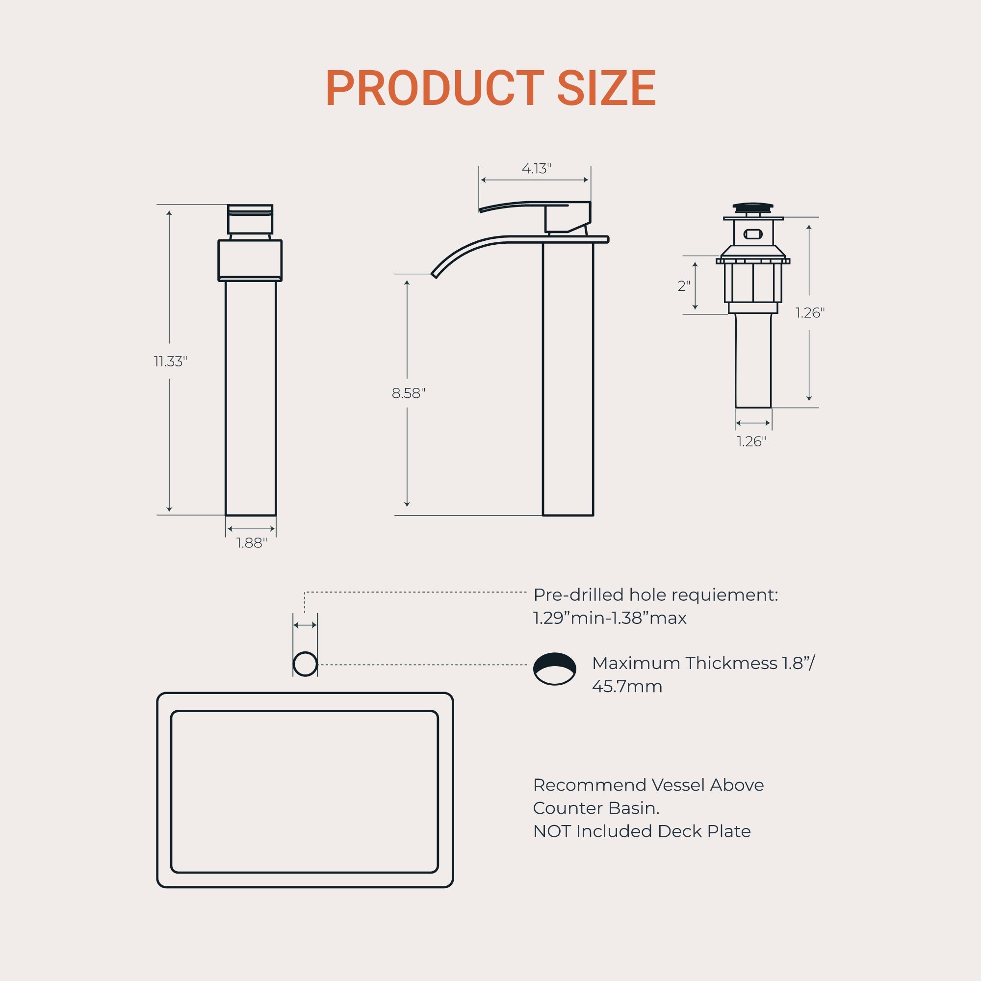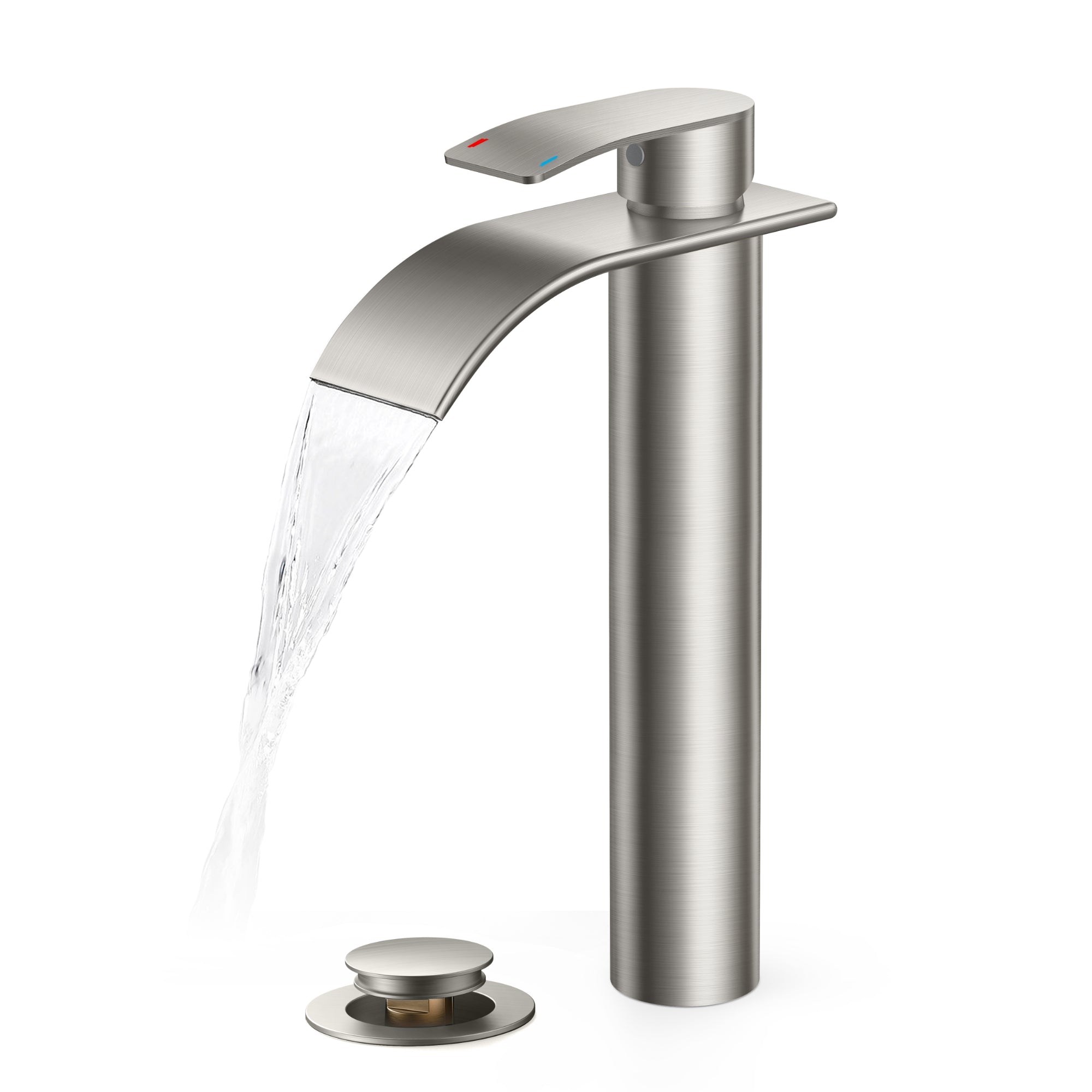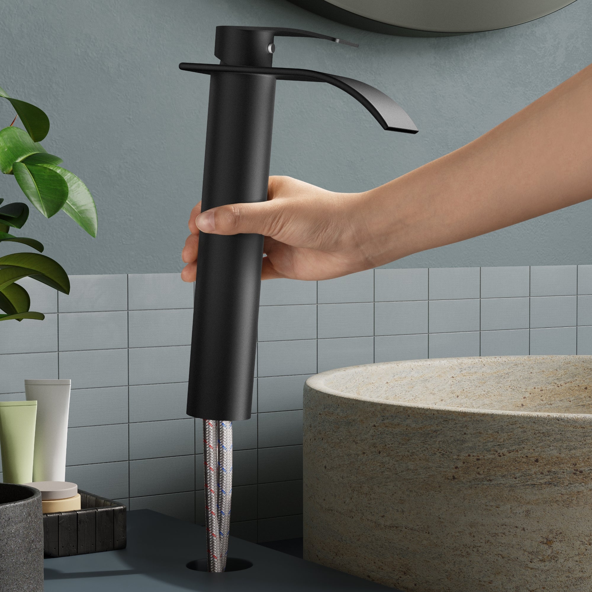 Everything Included: This tall bathroom faucet 1 hole comes with 3/8 threaded 24-inch hoses, a metal pop-up drain, and US-standard fittings. (Note: package not with deck plate)