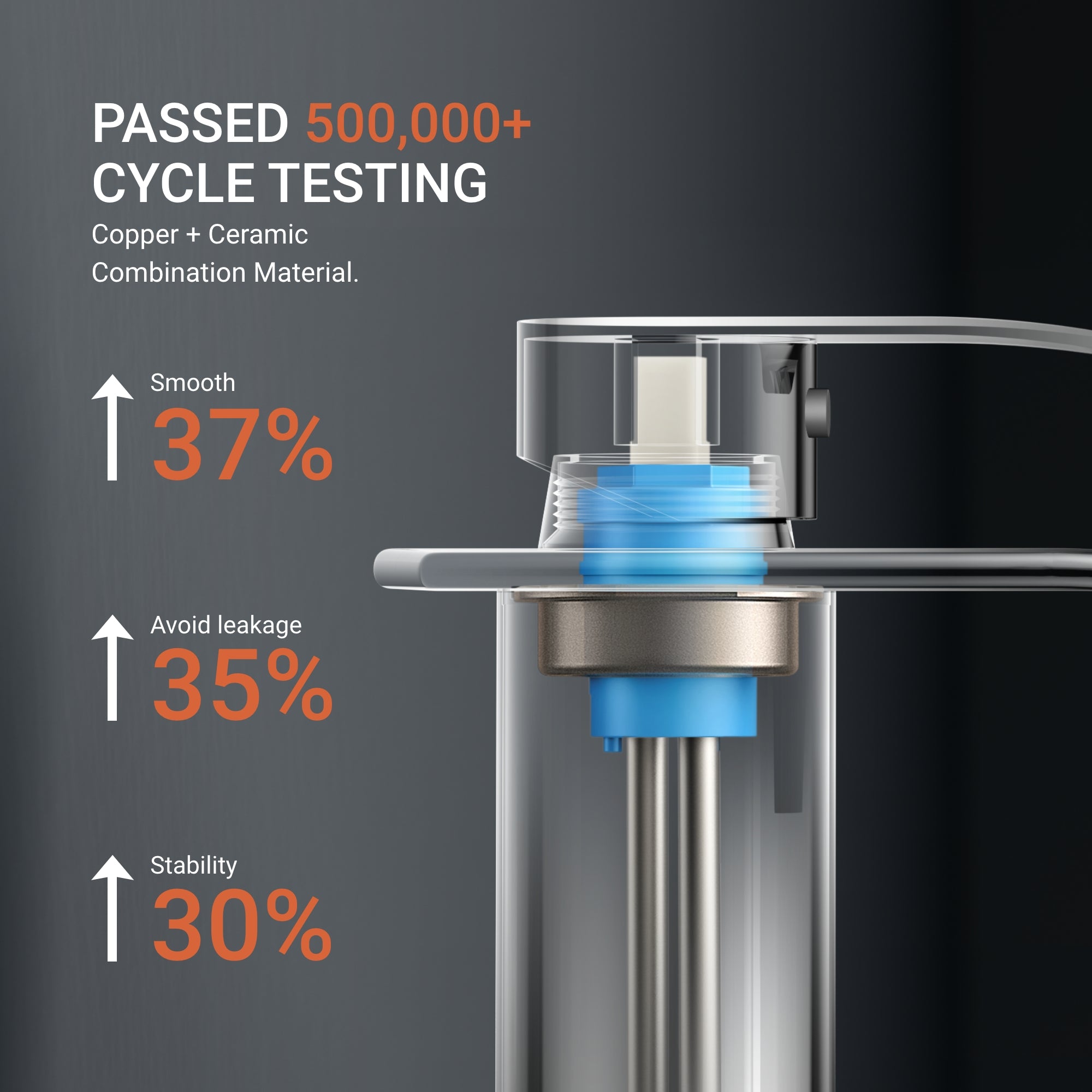 Leak-Free: Built with a ceramic cartridge tested through 500,000 cycles, this bathroom faucet resists hard water. Smooth handle control ensures drip-free operation for years.