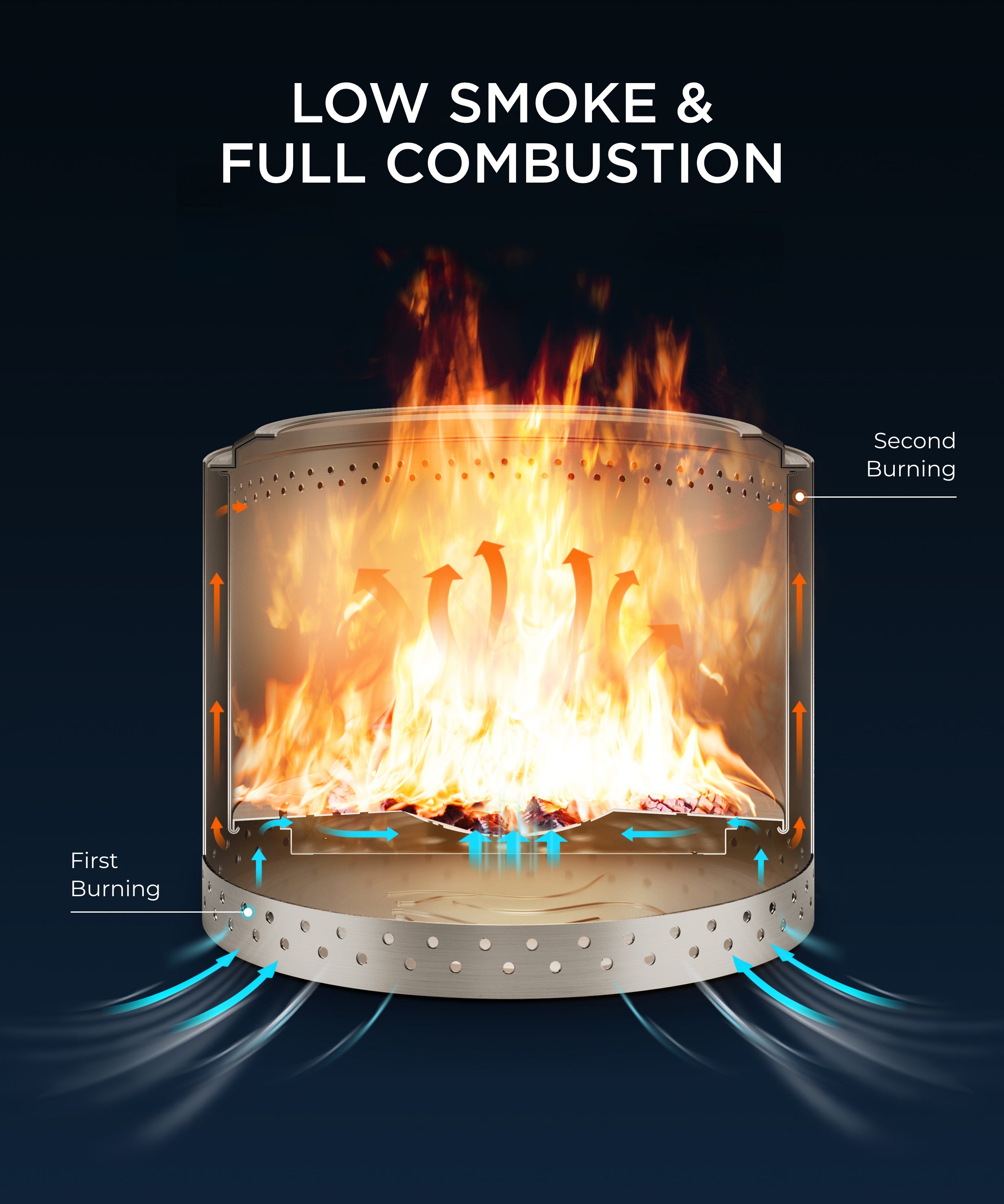 Want to level up your backyard nights and outdoor gatherings? This stainless steel smokeless fire pit is exactly what you need. It’s crafted from premium stainless steel with a high-heat ceramic coating-so it’s sturdy, rust-resistant, and built to last through years of campfires and bonfires. Plus, its 19.7-inch size and advanced internal ventilation are total game-changers: when the fire burns (especially after dark), it stays smokeless to keep your eyes comfy, while pouring out just the right warmth to keep the cozy vibe going all night long.